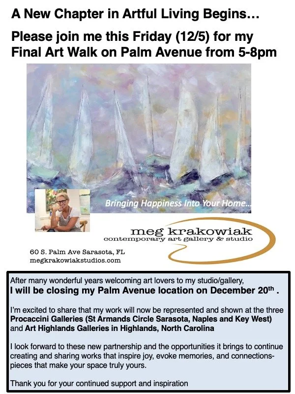 Meg Krakowiak is a contemporary award winning artist best known for her vibrant use of color. Initially inspired by Degas and the beauty of pastels, Meg creates work exploring color, light, and texture.